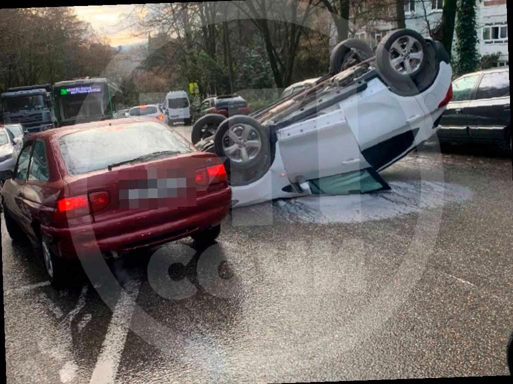 Машина оказалась перевернута прямо на проезжей части, окруженной другими припаркованными автомобилями. Как это случилось, неизвестно. Подробности о пострадавших пока отсутствуют.