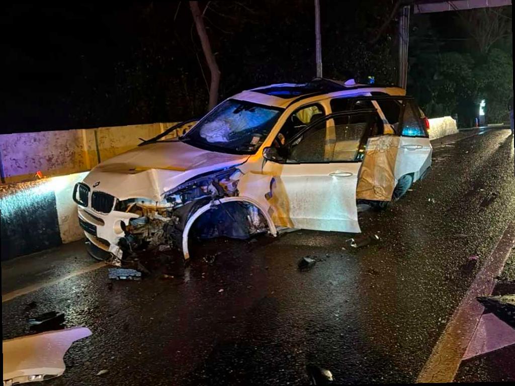 Утром в социальных сетях появились видеозаписи момента аварии. На видео видно, как машина, столкнувшись с бетонным блоком ограждения, буквально подлетела. Автомобиль серьезно пострадал в результате столкновения.